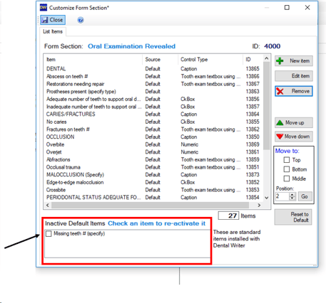 ****Note: If you ever remove a default control, it will go into the “Inactive Default Items”. You can always select it back to bring it back in or select “Reset to Default” to bring it back to its original format, but this would remove every customization for that section.